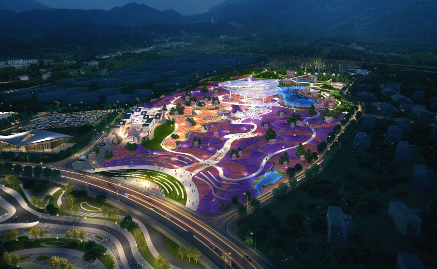 项目择址世界自然文化双遗产、国家5A级风景区黄山脚下,紧邻规划建设中的黄山东大门索道, 项目目前共计开发建设用地约1473亩,总体结构规划为“一轴一心四片”,围绕花海、中心湖景观布局住宅、商业、酒店等多元产品业态。项目建筑风格沿袭传统徽派风格并融合现代元素,形成简约时尚而不失传统徽派建筑之美的新徽派风格。